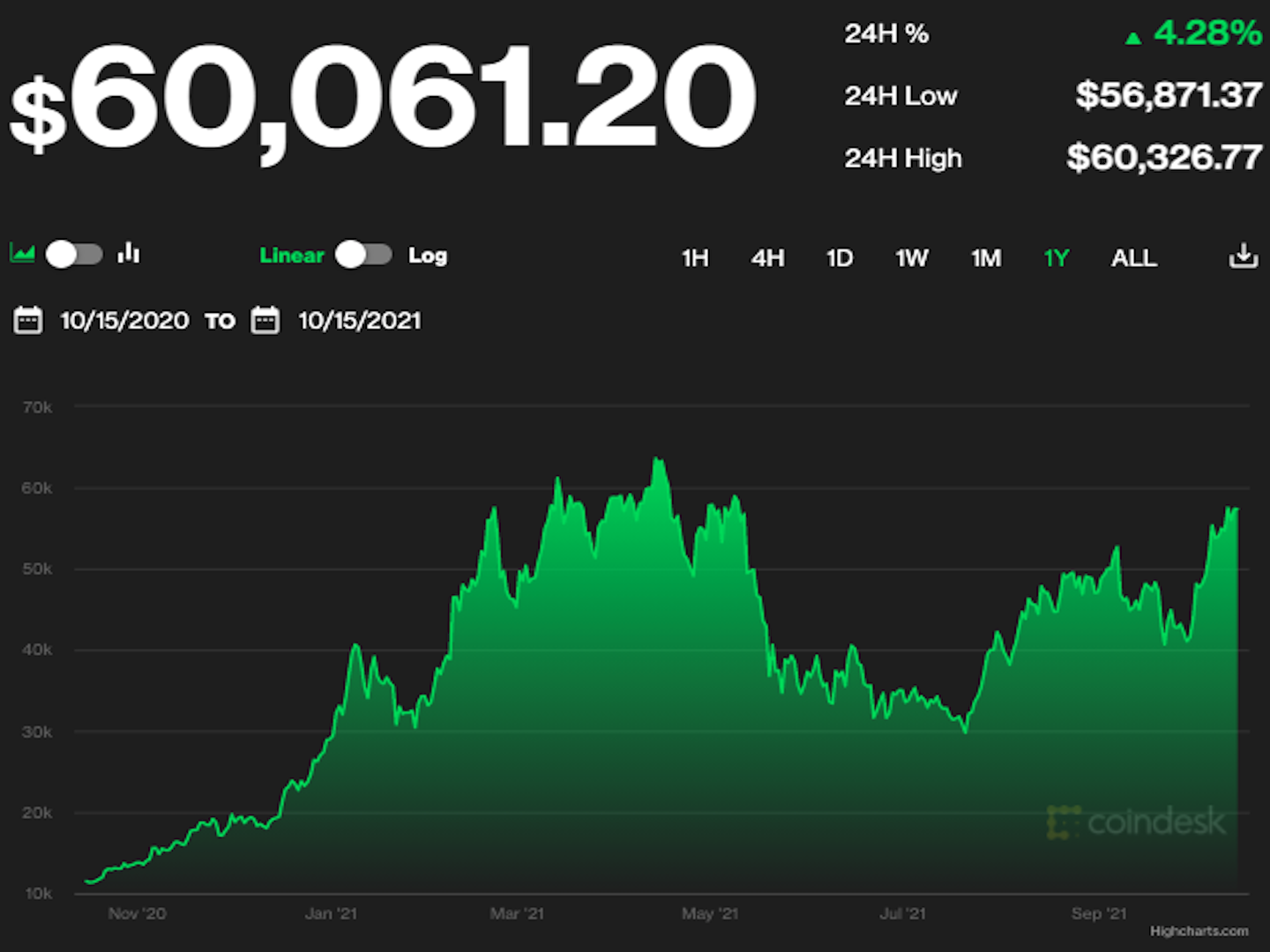 As of press time the largest cryptocurrency was changing hands around $59,900, after touching $60,300 earlier Friday.